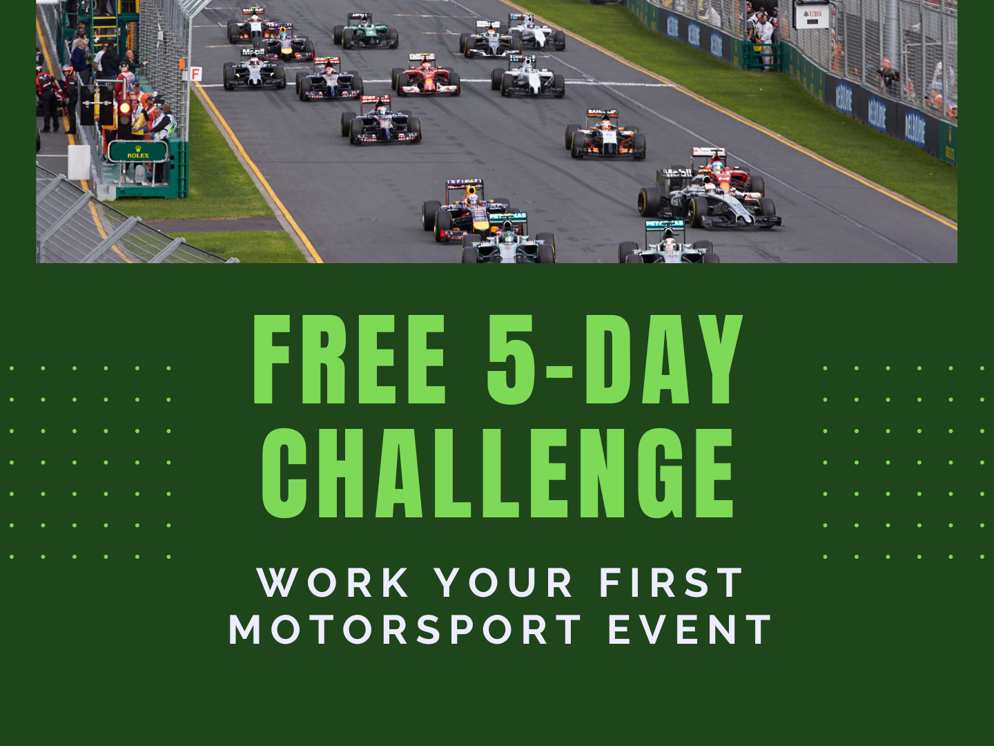 WORK YOUR FIRST MOTORSPORT EVENT FREE 5 DAY CHALLENGE